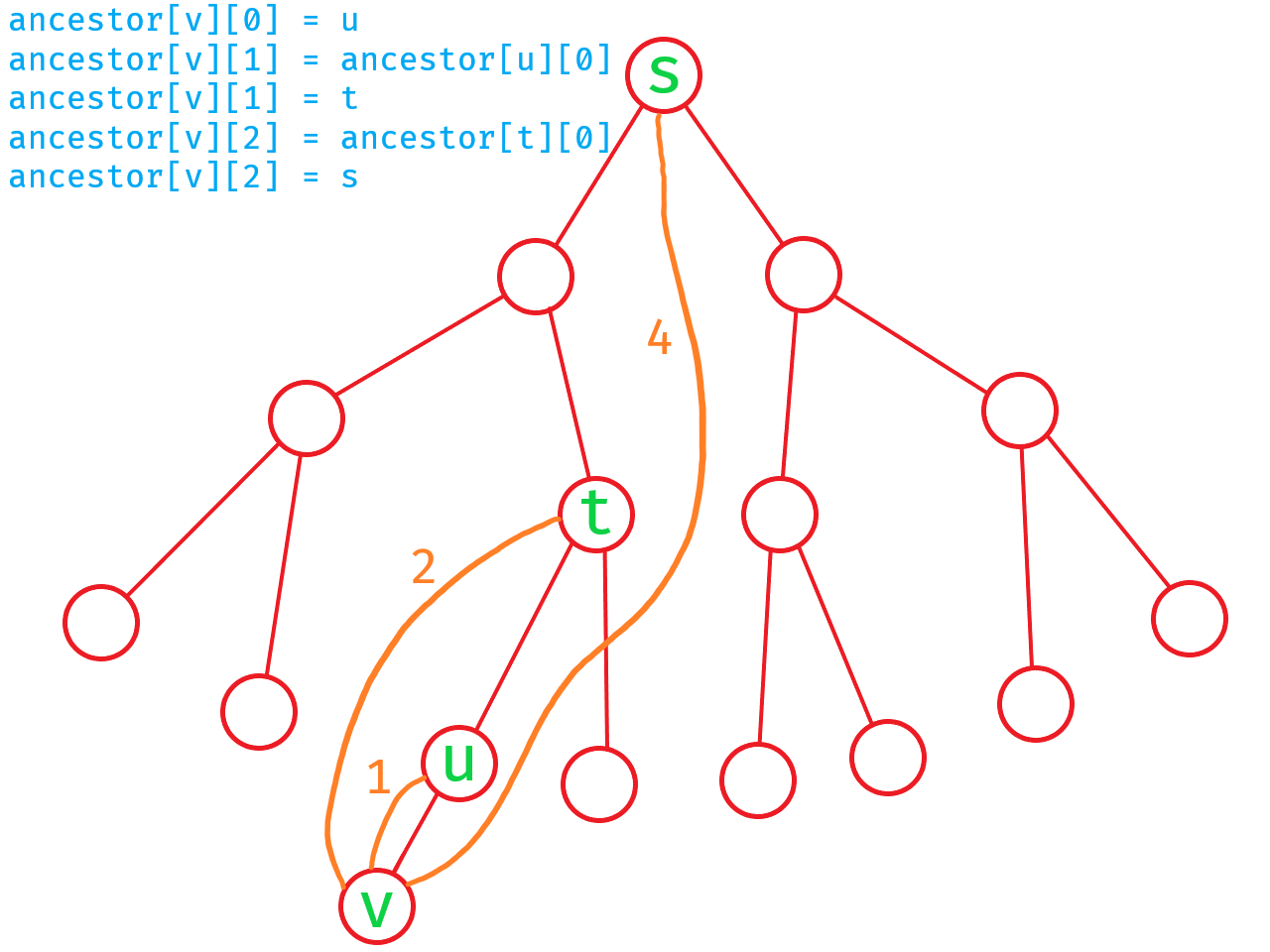 if (self.level[v] - (1 << k) >= self.level[u]):