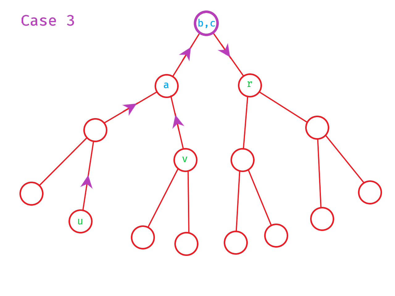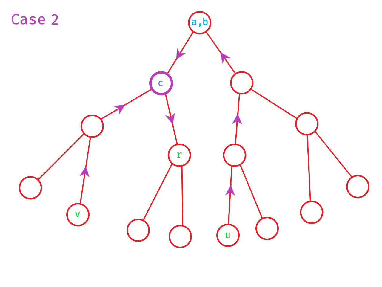 // Case 1: root is in the same component as u when `a` is removed from the tree. So `b` is the LCAn